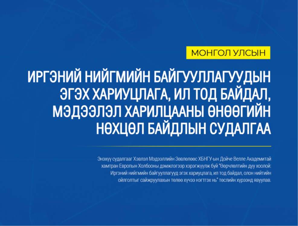 Европын Холбооны дэмжлэгтэйгээр Хэвлэл Мэдээллийн Зөвлөл, ХБНГУ-ын Дойче Велле Академийн хамтран хэрэгжүүлж буй “Өөрчлөлтийн дуу хоолой: ИНБ-ууд эгэх хариуцлага, ил тод байдал, олон нийтийн ойлголтыг сайжруулахын төлөө хүчээ нэгтгэх нь” төслийн хүрээнд хэрэгжүүлсэн “ИНБ-уудын эгэх хариуцлага, ил тод байдал, мэдээлэл харилцааны нөхцөл байдлын судалгааг” та бүхэнд хүргэж байна.