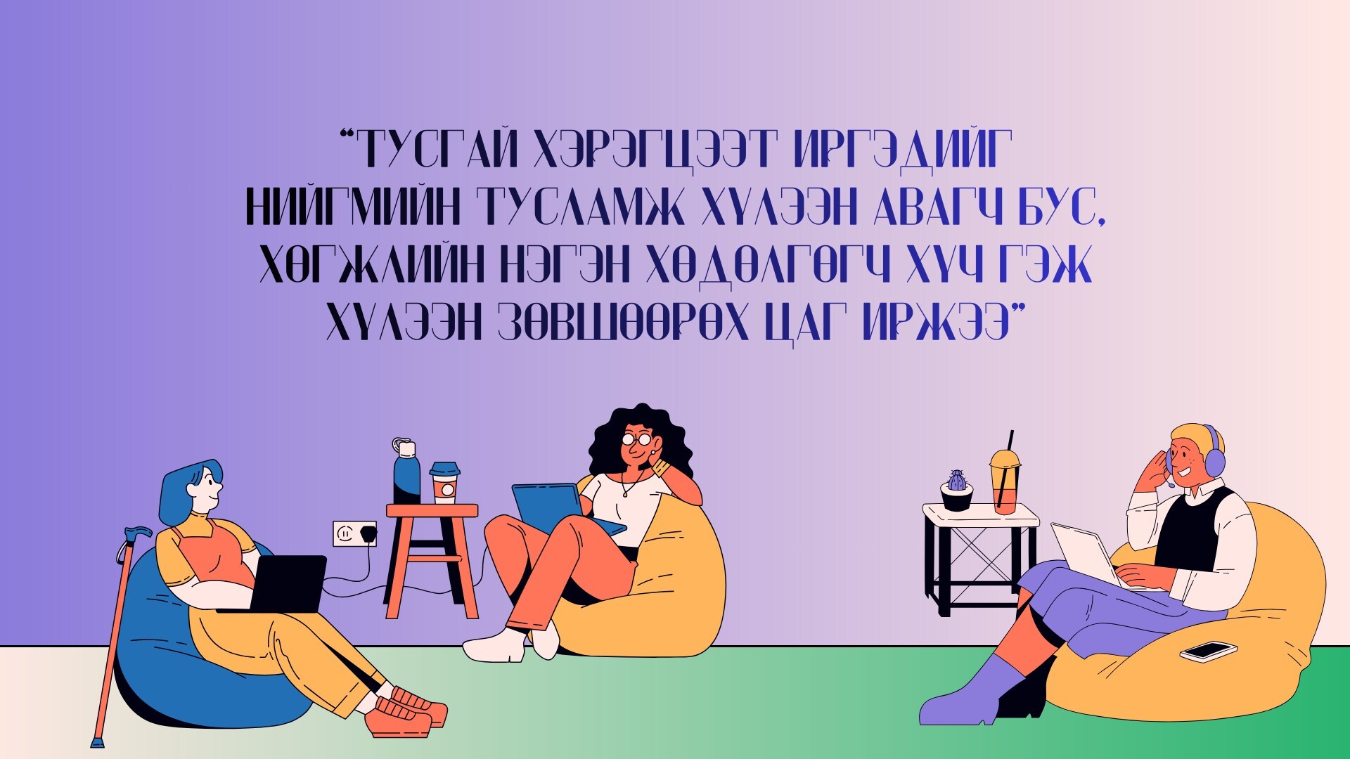 Хөгжлийн бэрхшээлтэй иргэдийг нийгмийн тусламжийн хүлээн авагч бус, хөгжлийн нэгэн хөдөлгөгч хүч гэж хүлээн зөвшөөрөх цаг иржээ. Тэдний оролцоог нэмэгдүүлэх нь зөвхөн ажил эрхлэлтийн тоон үзүүлэлт бус, илүү шударга, илүү бүтээмжтэй, илүү итгэлтэй нийгмийн эдийн засгийг бүтээх алхам юм. Хэрвээ компаниуд хүртээмжийг суртал уриа бус бодит үнэт зүйл болговол, тэр нь нийгмийн итгэлцлийг сэргээж, эдийн засгийн өсөлтийн шинэ эх үүсвэр болно. Монголын бизнесийн салбарт “АПУ”-ийн жишээг даган, “Говь”, “CU”, “Таван Богд” зэрэг компани хүртээмжийн бодлогоо тодорхой хэлбэрээр хэрэгжүүлж эхэлж байгаа нь нийгмийн зөв чиг хандлагын дохио юм. Хөгжлийн бэрхшээлтэй иргэд ажиллах боломжтой, оролцох хүсэлтэй, хамтдаа бүтээх эрмэлзэлтэй. Тэдэнд өрөвдөх сэтгэл биш, зөвхөн боломж л хэрэгтэй.