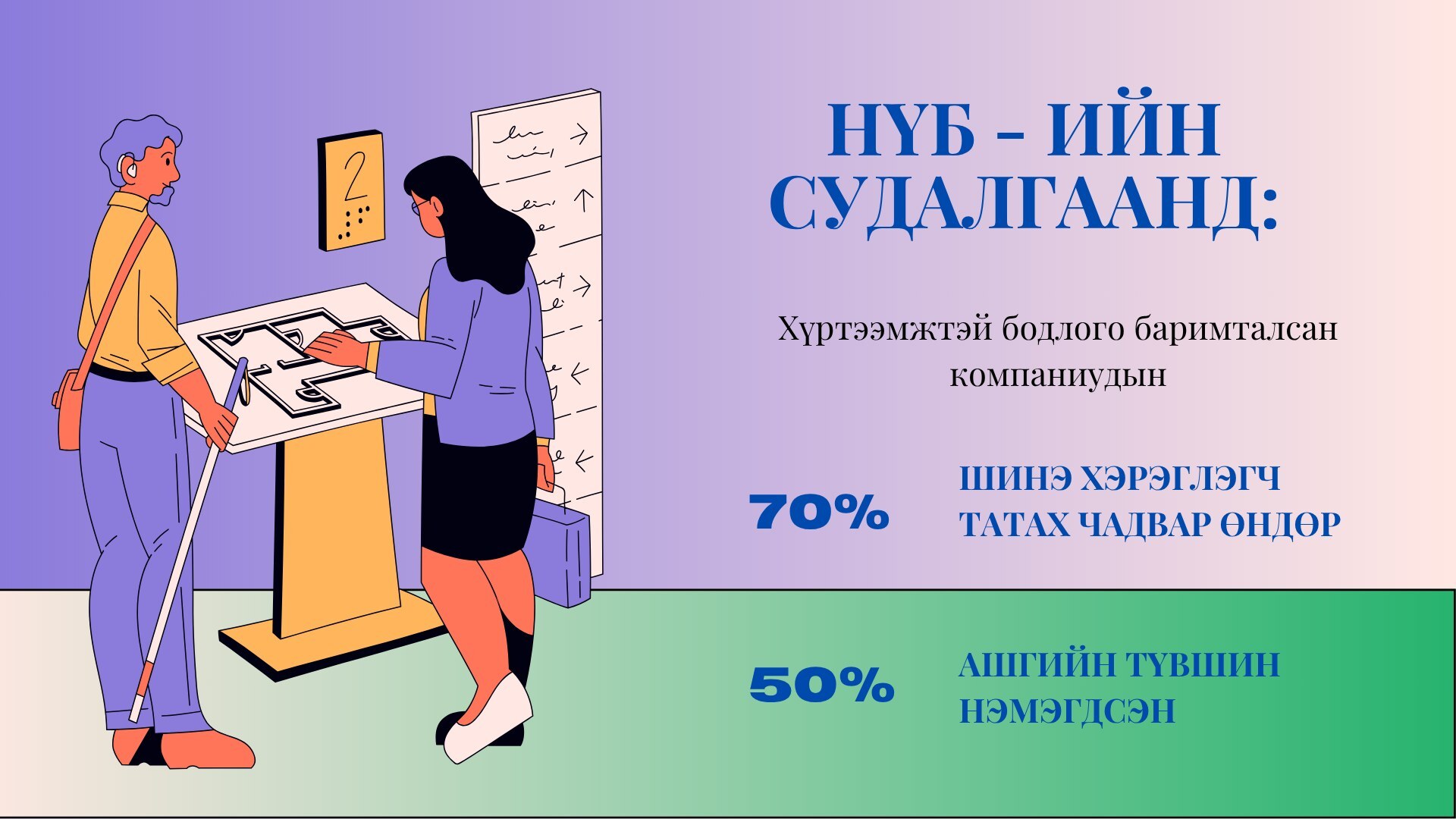 Монголын бизнесийн орчинд хүртээмжтэй ажлын байр гэх ойлголт сүүлийн жилүүдэд хөндөгдөж байгаа ч бодит хэрэгжилт сул байсаар байна. Тэргэнцэртэй иргэдэд тохирсон орц гарц, ариун цэврийн өрөө, хүртээмжтэй вэбсайт, цахим систем маш ховор бөгөөд ажлын орчны соёл ч бүрэн төлөвшөөгүй. Гэсэн хэдий ч дэлхийн жишээ харвал хүртээмжтэй ажлын байр нь зөвхөн хүний эрхийн асуудал бус, бизнесийн амжилтын түлхүүр болдог нь батлагдсан. Жишээлбэл Deloitte компанийн 2023 оны судалгаагаар инклюзив бодлого хэрэгжүүлсэн байгууллагуудын хэрэглэгчийн сэтгэл ханамж 39 хувиар, ашиг орлого 27 хувиар өссөн байна.