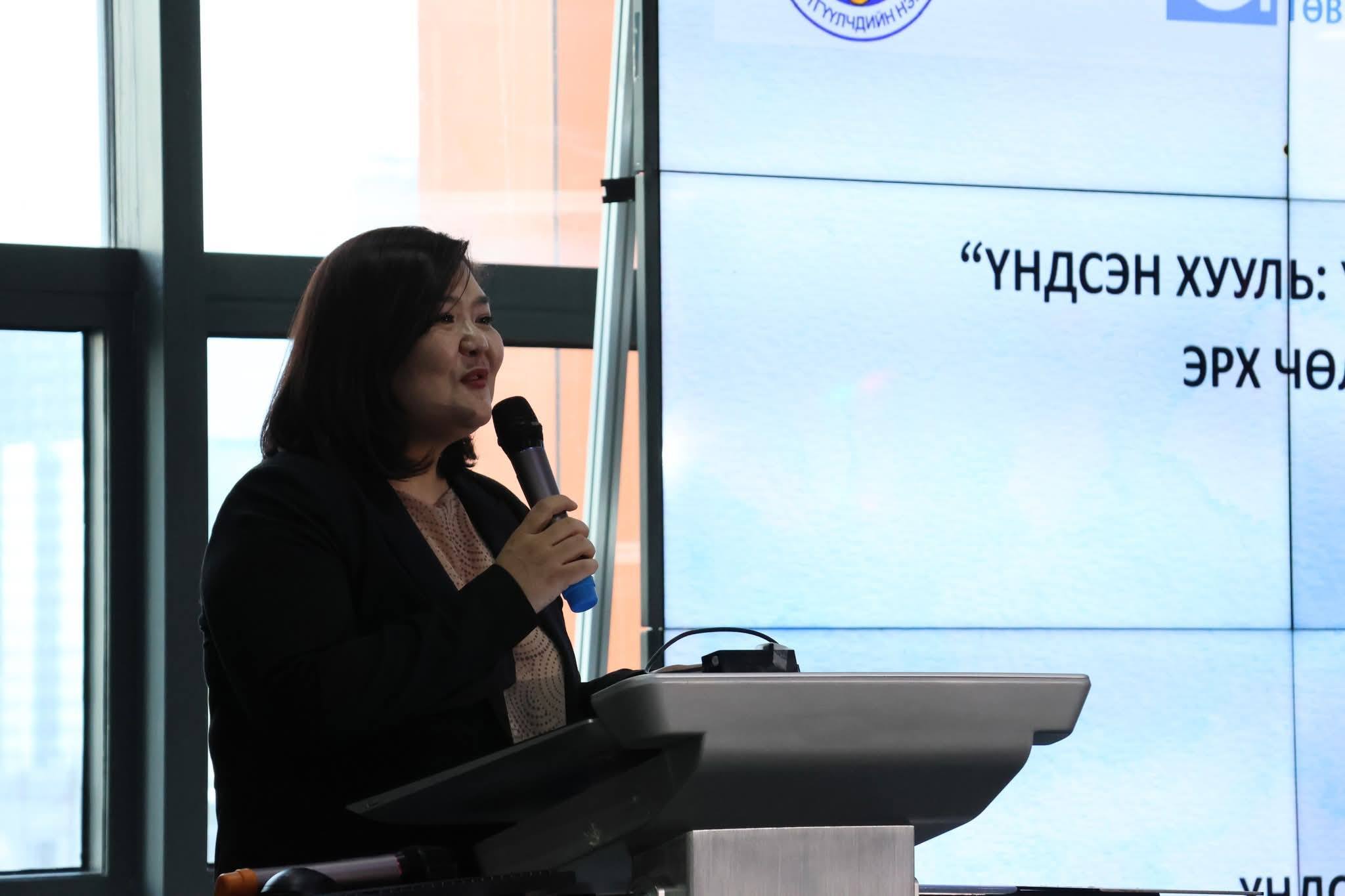 Түүнчлэн “Глоб Интернэшнл төв”-ийн хуульч Б.Пүрэвсүрэн “Монгол ба олон улсын жишиг: Нэр төр, алдар хүндийг хамгаалах нь” сэдвээр илтгэл тавьж, үндэсний болон олон улсын эрх зүйн зохицуулалт, шүүхийн практик, хүний эрхийн тэнцвэрт байдлын талаар мэргэжлийн дүгнэлтээ хуваалцлаа.